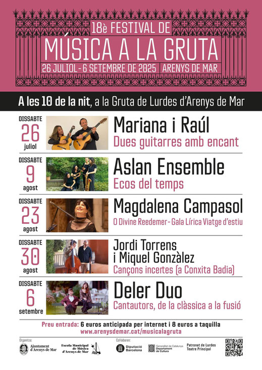 Concert de la mezzosoprà Magdalena Campasol a la Gruta de Lurdes d'Arenys de Mar aquest passat 23 d'agost. Va participar com a pianista la Carme Albors i amb el violoncel José Antonio Cabo.